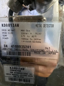 中古アンリツ防水型コンベア式金属探知機/品番KD3001AW