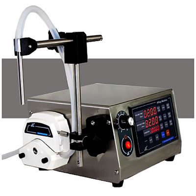 シャンプー、飲料、ワイン、ケミカル、香水、製薬、などの液体の充填が可能です。 | 中古小型卓上充填機シングルノズル 品番 M3152FM1-2400B 問い合わせ番号 Z-0915-4 |