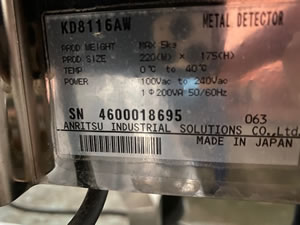中古アンリツ防水金属検出機/品番 KD8116AW