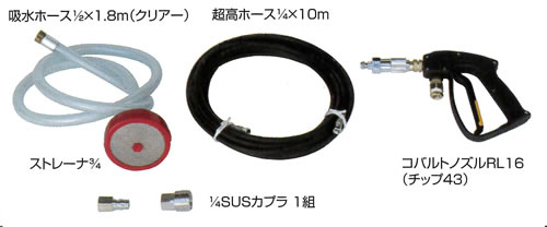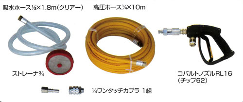 | 単相100Vで高水圧、高水量、各種洗浄及び空調設備の洗浄用に。 移動式(キャスター付き)、固定式から選べる。静音で軽量、持ち運びが便利。 モーターブレーカー装備で、過負荷時は電源を切断。 コバルトノズルは、直射と円錐が調節できる。 ![]() ■用途 ●自動車等各種車輛の洗浄 ●産業機械等の洗浄 ●空調機器及びラヂエター関係の洗浄 ●魚市場等水産加工工場の洗浄 ●醸造向上の各種洗浄 ●ビル管理システムい関する受水槽等の洗浄 ●汚水処理関係の洗浄 ●食品工場における床・機械の洗浄 ■タイプ/付属品