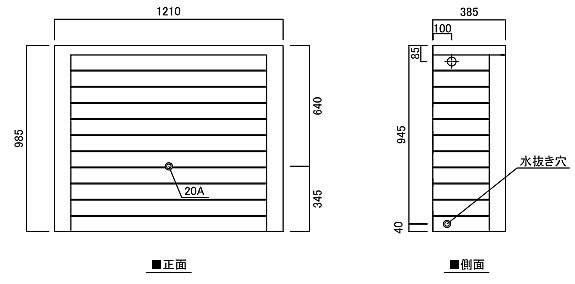 ■寸法図 ●M1305C20-GR700AG/M1305C20-GR700G ![]() ウッディタンク 木で囲ってあるような温かみのあるデザインの雨水タンクです。 約350Lの雨水を貯留できます。 樹脂製なので、ささくれがありません。 貯水量:約350L ![]() ![]() ■仕様