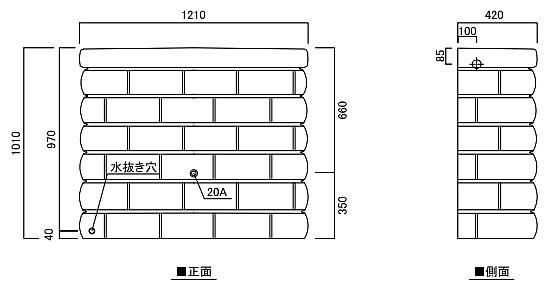 ●M1305C20-GR710AG/M1305C20-GR710G ![]() 切り出した岩石を積み上げたようなデザインの雨水タンクです。 約400Lの雨水を貯留できます。 貯水量:約400L ![]() ![]() ■仕様
