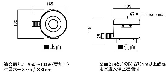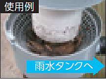 ■既存の雨どいに簡単に取り付けられます。 ●大雨でも雨どいの流れを妨げて逆流することはありません。 雨水レイントリマーA/M1305C20-GR5013G 角とい、丸とい共用のフリータ イプです。フィルターメンテナ ンスがしやすい。 冬期の雨水流 入が停止できるレバー付。 ![]() ![]() ![]() ![]() ■仕様