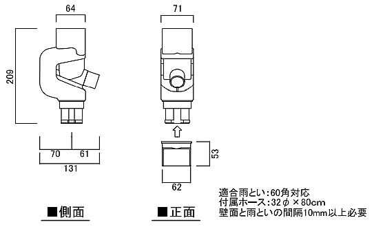 ●雨水レイントリマーE/M1305C20-GR5020G 雨どいが取り外し出来な い状態でも簡単に取付可 能です。 ●取付方向により集水量 が異なります。 ●他のレイントリマーより 集水量が少なくなります。 (メーカーテスト比較 約1/2) ![]() ![]() ■仕様