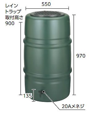 ●M1305C20-SS200KG/M1305C20-SS200RG 原料はリサイクル材を使用しています。 約227ℓの雨水を貯留できます。 連結タンクセットを簡単に接続できます。 貯水量:約227L ![]() ■仕様