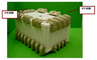 | ■特長 ●大切な製品の保護に、スペース埋めに、自由な発想でどうぞ ●耐圧強度も緩衝性も考え抜かれたリブ構造で、製品を優しく包装します ●1/4まで分割できるので、長さに合わせてお使い下さい ●材料は古紙100%、使用後は再リサイクルで環境に優しい「稜品」です ![]() ■タイプ ![]() ![]() ■仕様