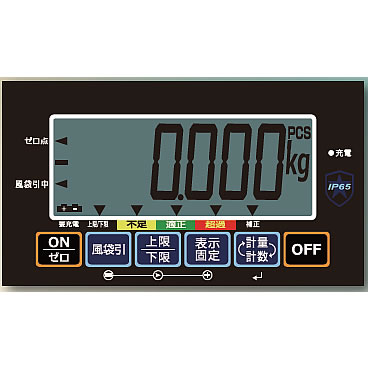 | ●防塵防水性能IP65 ●大きく見やすい表示、文字高51mm ●計数( カウンティング) 機能搭載 ●オールステンレスボディー ●わかりやすい日本語ボタン ●水場に強い、組立不要、箱から出してすぐに使えます! ![]() ■搭載機能 ●起動時ゼロ点自動調節機能 ●ゼロ点調節機能(ゼロ) ●風袋引き機能(風袋引) ●上下限値チェッカー機能(上限/下限) ●表示値固定機能(表示固定) ●計数機能(計量⇔計数) ![]() ![]() ![]() ■防塵防水性能IP65 ![]() ■アフターサービスも万全 1. 定期的な校正、メンテナンス。 2. 迅速、丁寧な修理対応。 3. 付属品のみの販売も可能。 ■タイプ