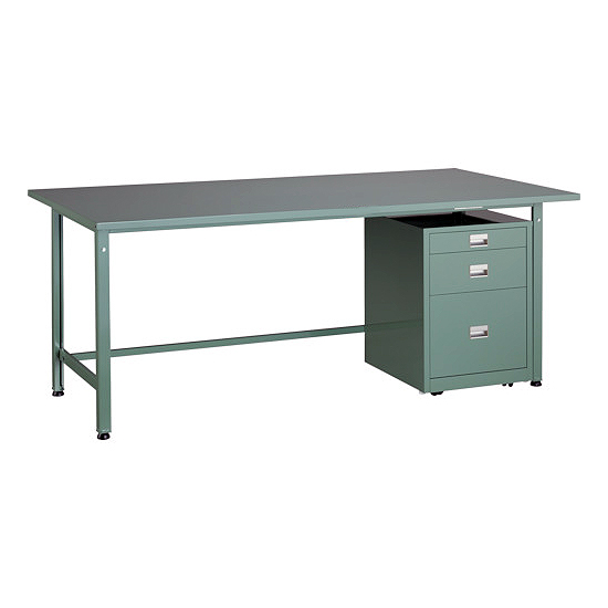 | 深さの異なる3段キャビネット付軽量作業台です。 ※作業台がダークグレー色の場合、キャビネットはホワイト色になります。 ![]() ■キャビネット引出し内寸