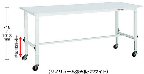 | ●719~1019(リノリュームは1018)mmの間で50mmピッチの高さ調節が可能です。 ●高さ調節が719~1019mmまで(調整ピッチ50mm)でできますので、作業内容に合わせて座り作業・立ち作業のいずれにもご利用できます。 ●ポリ化粧天板を使用し、表面は滑らかで、ソフトな光沢があり清潔感を保持し、耐水性・防汚性にも優れています。 ![]() ●移動の際には台の上に物をのせないでください。 ●キャスター取り付け時の本体均等荷重(静止時)は、80kg以下でご使用ください。 ●車上渡しのため、お客様での荷降ろしが必要です。 ■材質 ●本体:スチール ●キャスター金具:スチール ●車輪:ゴム ■脚部カラー ![]() ![]() ![]() ![]() ![]() ![]() ![]() ■タイプ