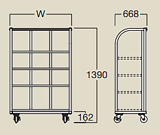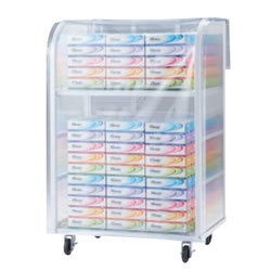| アルミフレームを採用し、防錆力に優れた軽量タイプのディスプレイテ ナーです。 側面パネルで横からのほ こりや雨が商品にあたりにくくなっています。 ![]() 均等耐荷重:300kg (棚板1段当り) ■寸法図 ※棚板、コロビ止めはオプションです。 ![]() ■タイプ