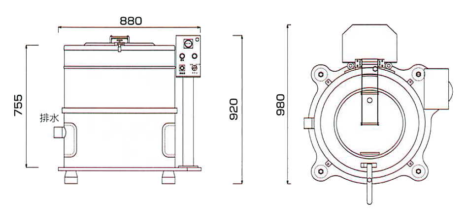 ざる籠式脱水機![]() ■特長 ●主要部はSUS304ステンレス製 ●外筒上下着脱式で内部清掃簡易 ![]() ●インバーター装置 ●自動タイマー ●自動ブレーキ ●安全蓋スイッチ標準装備 ●ポリざる、ステンレスざる(メーカーオリジナル)二種の容器使用可 ![]() ●低速/高速 10~1000rpm無断変速ボリューム式 ●シンプルな構造でメンテ簡易 ●据付はノンアンカーボルト(脱水物等使用条件によりアンカー止め必要) ■寸法図 ![]() ■仕様