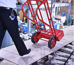 | ■傾けて、スイスイ運ぶ あらゆる業種に適した優れもの 荷物に手を触れることなくそのまますくいあげて運べます。 ![]() ■少しの隙間でも 差し込みやすい工夫で引っかかりなく動作もスムーズ。 高耐久性の鋼材で作られており、積載荷重もしっかり。 ![]() ■安定感が使いやすい。 不整地でも動きやすい大型で溝が深い車輪が標準装備。 耐衝撃性も備えており、スムーズな立ち回りが可能です。 ![]() ■タイプ