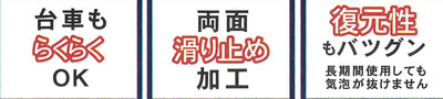 | 内包するマイクロバブルが、体重を分散・吸収 床面からの反発力を減らし、長時間の立ち作業による疲労を軽減させます。 マイクロバブルに含まれる空気が断熱効果を発揮し、床から伝わる冷気を防止。 ![]() ■疲労の蓄積を防止 ●防炎性能試験合格品 火花・切粉・スパッタ等熱に強く、変形・収縮の心配がありません。 ●環境改善・高熱費削減 断熱効果で床からの冷気を防止。 作業場の改善や光熱費の削減に貢献します。 ●変形・収縮の心配なし 油分・水分がしみこまないので変形や収縮がありません。 ●NBRラバーを採用 酸や化学薬品、石油系製品に強く、水分や油分を吸い込まないため雑菌の繁殖がしにくい構造です。 ![]() ![]() ■おすすめ組立製造ラインや検査ラインに 工場なラインに敷き詰めたい 必要な大きさにカットしたい。 ![]() ■使用例 ![]() ![]() ■タイプ ●穴なしロールタイプ