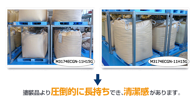 溶融亜鉛メッキ鋼管を使用したネスティングラック | 溶融亜鉛ネスティングラック(1100×1100標準パレット用) 品番 M3174ECN-11H15S 価格は下記をご覧ください |