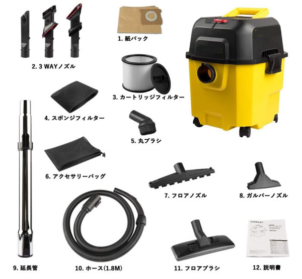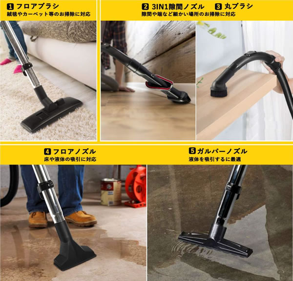 | ・上部フラット設計により収納しやすい ・ロック付きホースで操作の安定性をUP ・低重心設計で倒れに くい ・アクセサリーホルダー搭載、収納しやすい。 ・吸引力2段調整できる。手袋 していても押しやすいように大きめに設計されたスイッチは防水機能付き ・ブロワ機能付き ・高級感あるステンレス製 延長管 ・操作性抜群の旋回キャス ターで動きやすい。 ![]() ■特徴 ●多用途に活躍できる 使用目的によって使い分けできて、作業効率もさらにアップします。 業務用・店舗用だけではなく、家庭用にも広く使われます。 ![]() ■セット内容 ![]() ■仕様