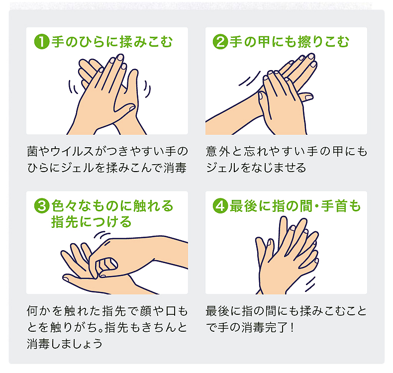 | いつでもどこでもサッと手指の消毒ができる オフィス、商業施設、学校、医療・介護施設など、ウイルスや菌が気になる時にサッと手指を消毒。 アルコール濃度約78vol%で気になるウイルスや菌もしっかり消毒。液だれしにくい速乾性ジェルタイプのため、ベタつかずさらっとした使い心地で使いやすさも抜群。 ※指定医薬部外品 ![]() ■特長 ●手指のウイルス・細菌を徹底消毒 大容量500mlなので、オフィスや施設、学校など多くの人が行き交う出入り口、共有スペースやトイレ、飲食店など食事前にも、設置場所を問わず、子供から大人まで安心していつでもどこでもサッと手指の消毒が可能です。 ●手肌に配慮した処方 保湿成分として知られるスクワランを配合しているため、 手肌にもやさしい使い心地です。 ●液だれしにくいジェルタイプ 寒天配合の塗り広げやすいジェルタイプ。手のひらや指の間まで塗り広げることができます。液だれしにくく、液こぼれによる床の汚染、ワックス剥離などの心配もありません。 ■正しい手指アルコール消毒ジェルの使い方 ![]() ■仕様