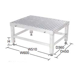 使用質量:100kg![]() ■特長 ●天板部にはアルミエキスパンドメタルを採用しており、水はけが抜群です。 ●本体はアルミ製で、30mm調整可能なアジャスターを標準で装備。 ●本体は連結可能となっています。 ![]() ■タイプ