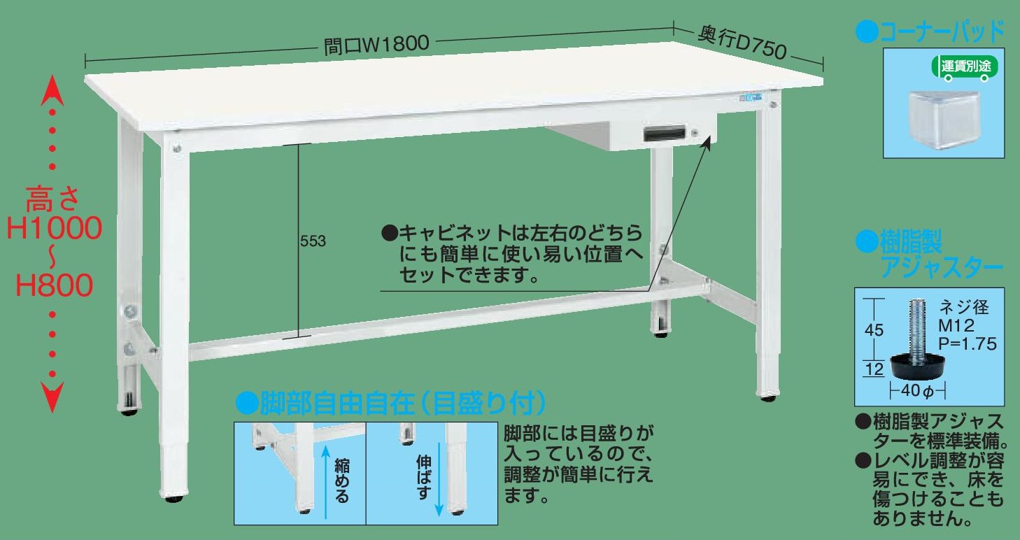 | 軽量高さ調整作業台(抗ウイルス天板)/品番 M350ATK8-096VPW |
