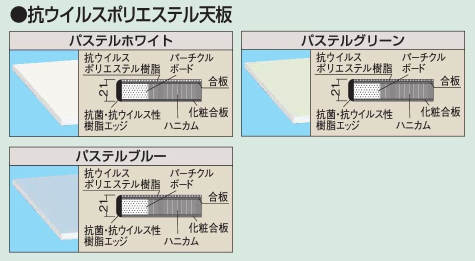 ●抗ウイルス効果のあるパステル色の天板を使用した作業台です。