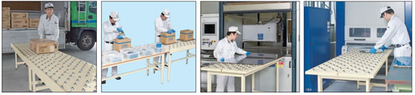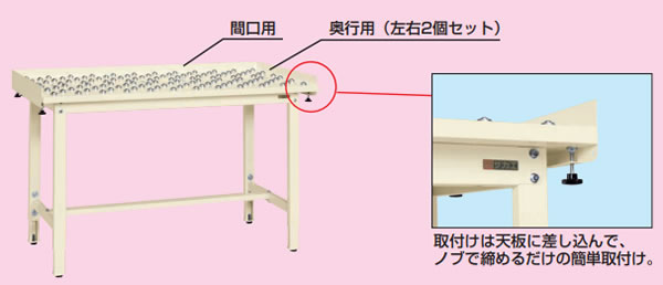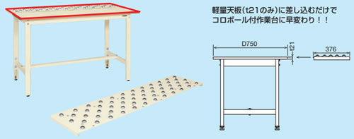 ■オプション ●ボールコロコンベーアー付天板 軽量天板(t21のみ)に差し込むだけで コロボール付作業台に早変わり!! ![]()