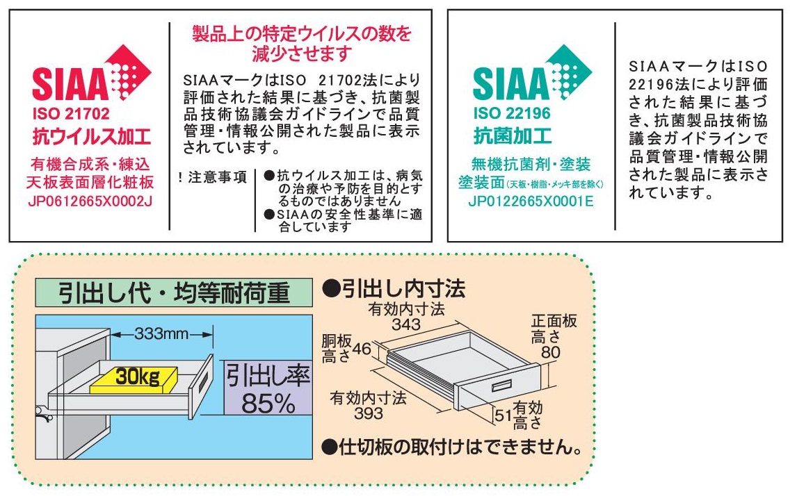 ■仕様 ●本体色:パールホワイト ●引出し内寸法:W343×D393×H51mm(仕切不可)