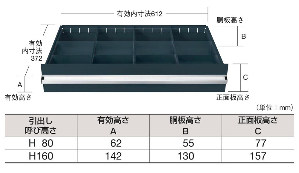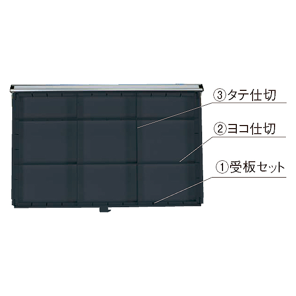 ■オプション ![]() ![]() ●タテ・ヨコ仕切板はピッチ50mmで調整可能なので自由に仕切ることができます。 ●H80・160mm引出しに仕切板を使用する場合は別途受板セットが必要となります。 ![]() ■仕様