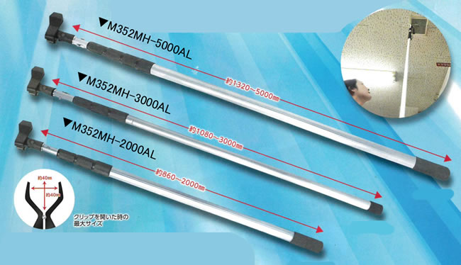 | 手の届かない場所への作業・点検に 最長5m!(5000ALの場合) 状況に応じて伸縮調整可能! ![]() ■使用イメージ ![]() ![]() ■タイプ ![]() ■仕様