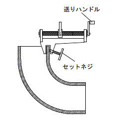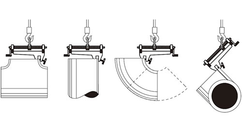 | ハンドルで重心を移動して継手の45°90°、水平出しが可能。 450kgの位置決めが一人で可能。 ![]() ■各部名称 ![]() ■使用方法 ①セットネジはどちらの方向からも取付けることができます。材料によって取り付け方向を変更します。 ![]() ②溶接する配管に接続する継手(または材料)を配置します。 接続する継手は、溶接する向きに置きます。 出来るだけ接続する継手の中心の位置にクレーンを準備します。 ![]() ③継手アジャスタ本体の取り付け溝に接続する継手の取付端面に近づけます。 継手アジャスタが接続する継手の中心方向に向いていることを確認します。 ![]() ④継手アジャスタは、送りハンドルを動かすことにより、理想の位置に移動することが出来ます。 ⑤セットネジを締めて材料をしっかり固定します。 ⑥クレーンのフックを吊上げハンドルに近づけます。 クレーンのフックを吊り下げフックに固定し、フックがロックされているか確認します。 ⑦接続する継手の水平、向きなどの位置あわせするために、継手アジャスタを吊上げて接続する継手を地面より少し浮かします。 ⑧継手アジャスタの送りハンドルを回して、接続する継手の傾きを修正します。 ⑨接続する継手を溶接するパイプに近づけて位置決めをします。 ⑩仮付けを行います。仮付け後、継手アジャスタを接続する継手から外します。 ![]() ■使用例 ![]() ■吊り上げ参考例 ![]() ■注意 ◆本製品は、天井クレーン、手動クレーンなどで使用する目的で製作されています。 吊上げ荷重は450kgを超えるクレーンを使用してください。 ◆本機を使用した場合の最大荷重は450kgです。最大荷重を超えた物を吊り上げないでください。 ■寸法図 ![]() ■保守・点検 以下の箇所を定期的に点検・清掃し、適時修正または交換を行ってください。 ●各部に大きな傷・ヒビなどの破損が無い事を確認してください。 ●各可動部が正常に動くことを確認してください。 ●全体の汚れはやわらかいウエスでふき取り、汚れがひどいときは、水で浸した布をよく絞ってから汚れをふき取ってください。 その後、乾いた布で拭いてください。 ●使用後は全体を清掃してください。 ■仕様