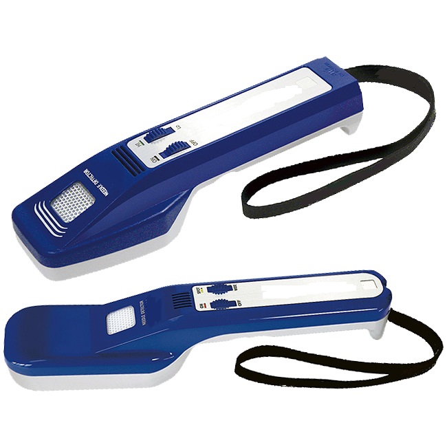 | パワーアップした検知力 折れ針等を光とブザーでお知らせ 抗菌加工でいつでも清潔 使いやすいハンディタイプ アパレル製品に混入した折れ針等の鉄片検出 コンベア検針機、卓上検針機などで、鉄片等を検知した後の検出位置の特定