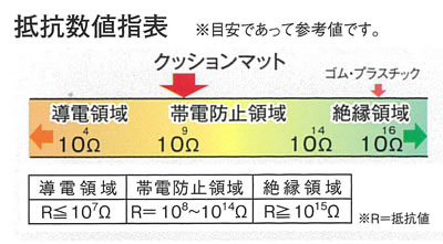※上記以外の別サイズは製作できません。 ※RoHS2、REACH対応 ※ロットにより、寸法・厚みと踏み心地に若干のバラツキがあります。 ※温度変化により伸縮する場合があります。ご了承下さい 塩ビ不使用 ■優れた制電効果で静電気による製造ロスを削減し作業効率を向上 クッション性のある長尺タイプなので広範囲で披露・底冷えを軽減 ![]() ■優れた静電気除去機能 このマットは、各層に高分子型帯電防止剤を使用しており、半永久的な帯電防止効果があり、静電気を表面から裏面へスムーズに導きます。 ![]() ![]() ■底冷えや疲れも軽減 導電性を維持しながら高倍率に発泡したクッション層が立ち仕事による疲労防止、転倒時のケガ防止、底冷えなどにも効果を発揮しセル生産工場にも対応します。 ■フラットな表面形状で細かいゴミや汚れが取りやすい ![]() ![]() ![]() ■仕様