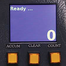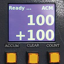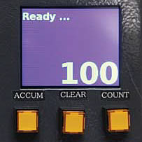 COUNTボタンを押すとブザーが鳴り累計枚数を表示します。直前にカウントした枚数は下段(+)に表示されます。