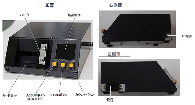 セットした後にシャッターを閉じてカードが垂直に立つようにシャッターを閉じカウントボタンを押します。