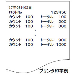 | ブランクシート、ハガキ、小冊子などの計数用 傷、汚れを付けず高速で計数 ※実際に計数されるサンプルをお預かりして見積・調整を行います。 ![]() ●非接触式のため角折れ・傷・汚れがなく、最終製品に使えます。 ●ブランクシート(厚さ 0.4mm )300枚を3秒で高速カウント。 ●操作が簡単!ワーク変更時もボタン操作だけで誰にでも簡単に使えます。 ●ワークに合わせ拡張テーブルが選択できます。(オプション) ●プリンターで日報出力ができ、手書きによる日報作成が不要です。 ●計数履歴をパソコンに保存できます。(オプション) あらゆる業界(印刷・カード製本・紙器・電子)に対応した機種をラインナップ 内蔵タイプのプリンタを標準装備 ■主な計数対象実績 カード(IC カード・クレジットカード・プリペイドカード・紙カードなど)、封筒、ハガキ 圧着ハガキ、商品券、通帳、搭乗券、薬品用能書、薬品ラベル、DVD、CDなど ■履歴管理内容 1)プリンタ出力(標準装備) 計数年月日・時間・ロット番号・カウント数・トータルを計数毎に印字 2)パソコン通信(オプション) 枚数計を最大4台まで一括管理 プリンタ出力内容に加え、品名・計数担当者の登録可能 履歴ファイルをパソコンプリンタで印字、およびCSVファイルで保存 ![]() ■パソコン画面例 ![]() ■プリンタ印字例 ![]() ■仕様