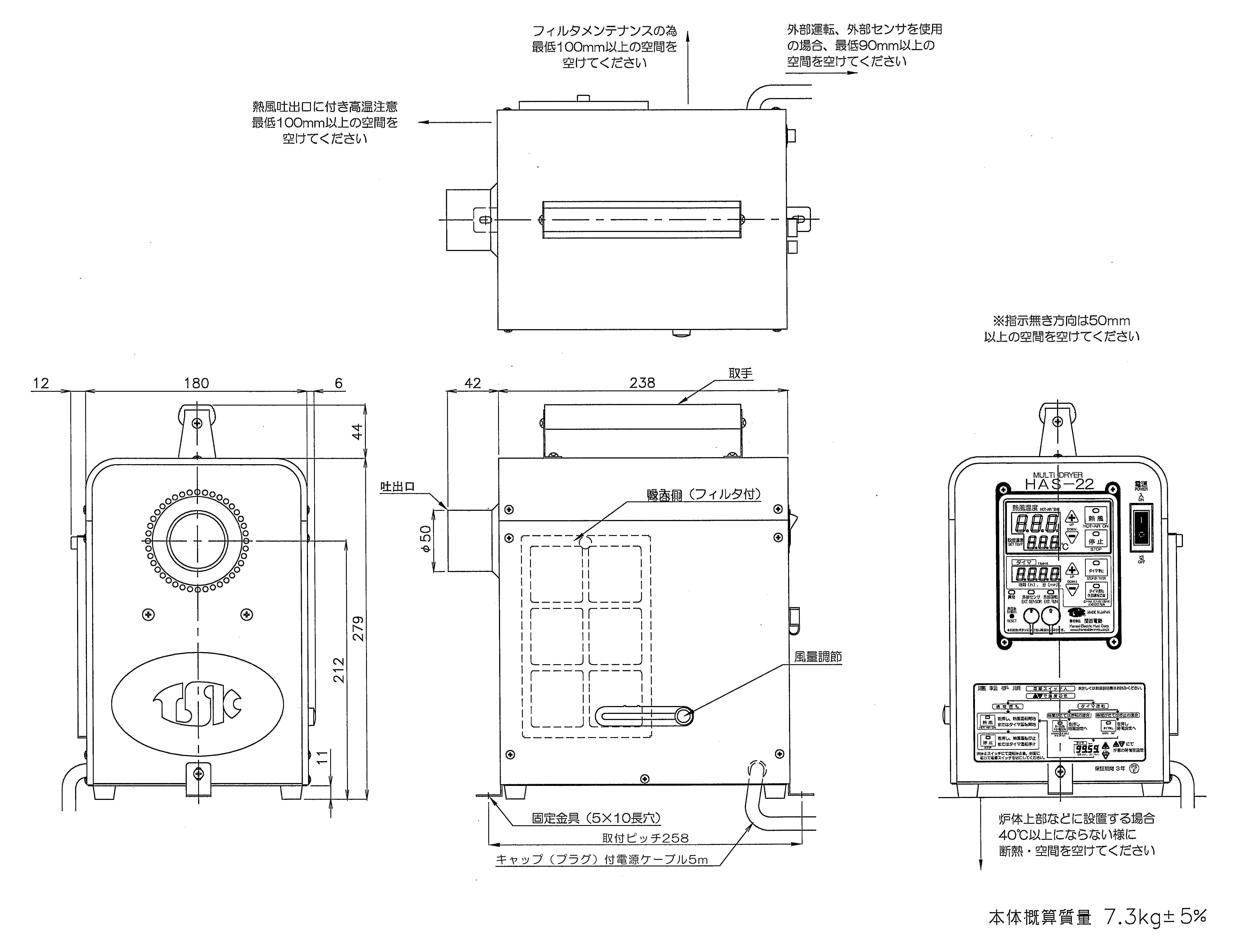 ※最大消費電力(kW)はヒータ容量+送風機容量を合計した値