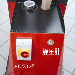 モーターの過負荷を確認できる静圧計と逆相時の停止装置