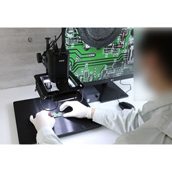 | 「たった約0.5秒」で高精細な映像を表示 フルHD200万画素、1/2インチCMOS搭載。 PC不要のモニタ接続式顕微鏡 長焦点高速オートフォーカスデジタル顕微鏡 ![]() ●超高速オートフォーカスと高画質を両立。 PCに接続不要、HDMIケーブルでモニタに接続し映像を映し出します。 ※モニタは別売りです。 ![]() ■超高速オートフォーカスならスピードと精度で観察時間を大幅に短縮 オートフォーカス(自動ピンと調整機能)の中でも超高速かつ正精度の高い焦点合わせを実現。 フォーカスしたい箇所をモニタの中心に配置するだけ、およそ0.5秒の速さでピントが合い、「見たい」その一瞬を見逃しません。 操作がなくスピーディーに観察でき、時間を大幅に短縮する事が出来ます。 ■検査精度を向上するフルHD200万画素・1/2CMOSセンサー搭載 フルハイビジョンによる高画質200万画素、さらに1/2CMOSセンサーを搭載し、従来の顕微鏡に差をつける高精度な映像を表示します。 これまで見づらいと感じていた対象物の形状をより際立たせ、リアルを追及。 不具合特定の精度を向上します。 ■光学ズーム最大20倍、デジタルズーム6倍で微細な観察を可能にします 1クリックの自動ズーム機能で簡単に拡大 このオートフォーカス顕微鏡の光学ズームは20倍、デジタルズーム(6倍)と合わせると最大120倍と高倍率。 微細な観察を可能にします。 また光学・デジタルズームは1クリックで簡単に調整することができます。 ※光学ズーム20倍と併用で最大120倍 ※22インチモニター使用時 被写体までの距離10cmの場合 ■鮮明な映像をそのまま静止画・動画として保存 高画質を保ったまま静止画や動画の撮影、保存が可能。 撮ったデータはmicroSDカード(最大32GBまで対応)に保存されます。 PCにデータを移行し、メールへの添付や報告レポート用としてデータ活用が可能です。 ■金属部品、樹脂、鋳物のキズ、バリ、クラック等の外見検査や金型検査および成型品の寸法測定 ![]() ■電子基盤のコネクタ内部・ハンダ不良(はんだボール、ブリッジのキズ等)の確認 ![]() ■PC不要のモニタ接続 操作をシンプルにすることで時間を短縮 マウスによる直感的な操作で作業効率が大きく変わる 顕微鏡は付属のHDMIケーブルを使用し、モニタ(別売)へ接続して観察を行います。 普段使い慣れたマウスを使用するため直感的に操作することができます。 また、難しい操作は一切不要。シンプルな機能で作業が簡素化され、業務の効率化を図ることができます。 ![]() ■撮影・AF/MF、ズームや撮影などの基本的な操作を行います。 その他にも画面上にクロスラインを表示する機能が搭載されており、対象物を観察する際の簡易的なな基準として活用できます。 ![]() ■4方向から照射するLEDユニットで強力な明るさを発揮 光量や角度の調整で金属観察時の反射を軽減します 従来の顕微鏡はLEDライトが小さい、光量が少ないなどの課題がありました。 その場合、オプションライトの追加でコストが上がる可能性も。 このオートフォーカス顕微鏡は従来の課題を解消。 25×95mmサイズのLEDライトが4方向に配置されているため対象物の観察にも対応します。 ![]() ■角度の調整が可能 ![]() ■光量や角度の調整で金属の反射を低減できる ![]() ■サイズ ![]() ■付属品 ●デジタル顕微鏡 ●テスト用マイクロSDカード8GB ●LEDユニット ●土台 ●スタンド ●落下防止リング ●顕微鏡昇降ブラケット ●顕微鏡用電源ケーブル ●HDMIケーブル ●マウス ●六角レンチ×4 ●M5-10mmビス×4本 ●顕微鏡用ACアダプター ●LED光源用電源 ※本製品は組立が必要です。 ※モニタは付属しておりません。 ![]() ■仕様
