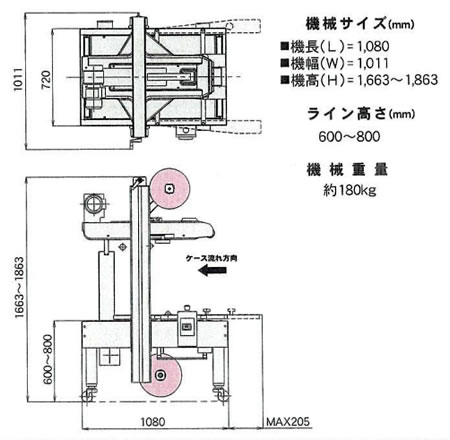 大箱用 テープ幅50-75mm![]() ■特長 ●重量物に最適!大箱ケース対応可能 幅広の上下ベルトでケースをしっかり搬送。 重量物や背の高いケースも確実にシーリング出来ます。 ![]() ●ハンドル操作で簡単にサイズ調整が行えます。 ●欧州機械指令「2006/42/EC」に適応した設計です。 非常停止ボタン・上ベルト駆動部にカバーを標準装備し安全性を向上しました。 ●逆仕様への変更も可能です。 ※入口部ローラーコンベヤはオプションです。 ■寸法図 ![]() ■仕様