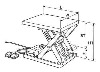 | AGVなどに搭載しやすいバッテリー DC24Vタイプです。 コンパクト、省スペースその上、薄さまで兼ね備えたタイプ。 積載荷重:100kg、150kg ![]() ■特長 ●ブラシレスモーター使用 ●超低床80ミリ(外部にユニットが付きません) ●ベクトル制御 ●ドライシリンダー ●ユニット内蔵 ●最大起動頻度10回/分 ●ジャバラ式フルカバーあり ●LED付フットスイッチ コード:2m ●上限・下限リードスイッチ付 ●電源コード:2m ●最大使用回数4万回 ●粉体塗装 ※テーブル側方からの積載時:W側からは1/2、L側からは1/4の積載荷重(表中)以下で行って下さい。 ※テーブル上で溶接作業はしないで下さい。 ![]() ■足踏み ■寸法図 ![]() ■仕様