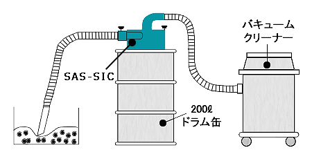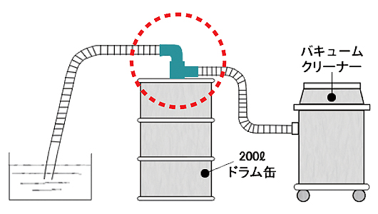 <ドラムアダプター/SAS-DRAM> ●回収物が液体のみで大量の場合、ドラムアダプターの併用をお勧めします。 ●水・油などの液体を200L密閉ドラム缶に回収することができます。 ●ドラムアダプターをドラム缶の穴にセットするだけです。 ●回収ホースは32φ、38φのいずれかを選択でいます。 ![]()
