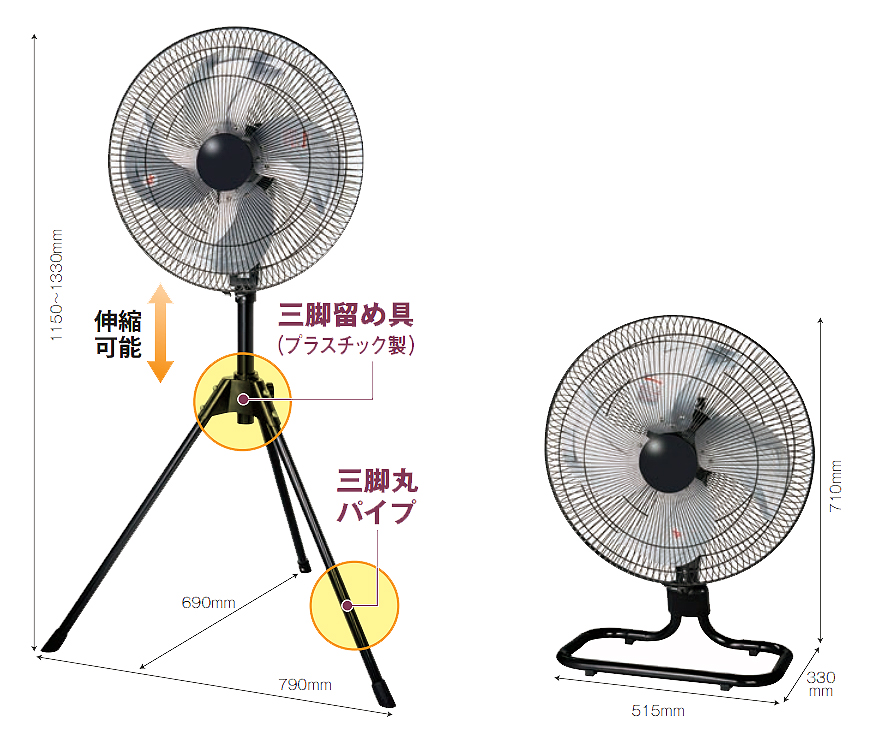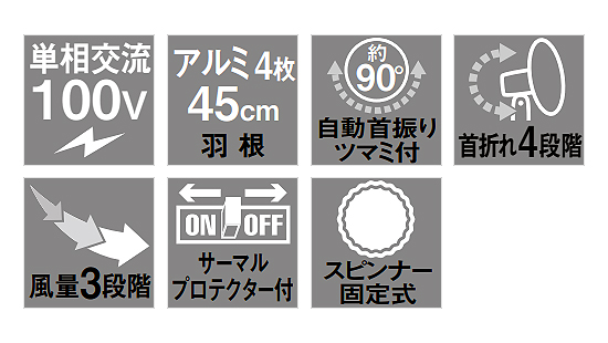 | ●全高1150mmから1330mmの範囲で高さ調節可能なME1ALSE-45Aと設置場所を選ばないフロア置きタイプのME1ALZF-45A ●アルミ四枚羽で風量三段階調節、首の角度は4段階調節 ●サーマルプロテクター(過熱保護装置)内蔵で、モーターが過熱した際、電源を遮断します ●夏場の高温対策に! 冷暖房効率アップ!