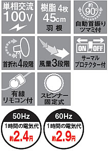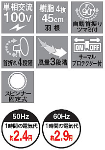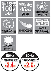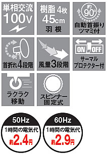 | ■特長 ME1SPSE-45N 上下に伸縮可能な工場扇 工場、倉庫、集会場などの空気の循環に サーマルプロテクター(過熱保護装置)内蔵で、モーターが過熱した際、電源を遮断します 夏場の高温対策に冷暖房効率アップ ■特長 ME1SPZW-45N 手もとで操作可能な有線リモコン 工場、倉庫、集会場などの空気の循環に サーマルプロテクター(過熱保護装置)内蔵で、モーターが過熱した際、電源を遮断します 夏場の高温対策に、冷暖房効率アップ ■特長 ME1SPZF-45N 自動首振りツマミ付き 風量三段階調節、首の角度は4段階調節 サーマルプロテクター(過熱保護装置)内蔵で、モーターが過熱した際、電源を遮断します 夏場の高温対策に、冷暖房効率アップ ■特長 ME1SPZC-45N 移動に便利なキャスター付き 風量三段階調節、首の角度は4段階調節 サーマルプロテクター(過熱保護装置)内蔵で、モーターが過熱した際、電源を遮断します 夏場の高温対策に冷暖房効率アップ ■移動に便利なキャスター付き ![]() ■スイッチボックス ![]() ■壁面設置金具(穴寸法図) ![]()