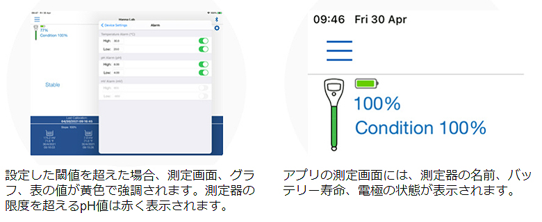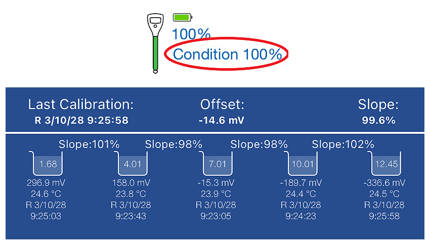 | Bluetoothを搭載し、お手元のスマートフォンやタブレットがpH計の早変わりします。 土壌の測定に適したpH電極を採用。円錐状の電極先端部とオープンジャンクションの構造により土壌への突き刺しやすさはもちろん、付着物による詰まりを最小限に抑え洗浄のしやすさも実現。 pHを測定することで作物にとって育ちやすい環境を知るのに役立ちます。さらに土壌以外の溶液(液体)も測定できるため水耕栽培の養液管理でも活躍します。 ![]() ■特長 ●4点校正が可能で、±0.05pHという測定精度 小型のpHテスターとしては信頼性の高い1台です。 ●データの保存や転送も簡単! Bluetooth接続で無料の専用アプリを利用すれば、お手元のスマートフォンやタブレットの操作で簡単にデータ送信が行えます。 ●圧倒的なコストパフォーマンス! ポケットに入るサイズの従来のpHテスターとは一線を画すMF2PHN-9810302H。ラボ向けの専用電極を備えた本器はコストパフォーマンスも圧倒的です。 ●土壌の測定に適したpH電極を採用。円錐状の電極先端部とオープンジャンクションの構造により土壌への突き刺しやすさはもちろん、付着物による詰まりを最小限に抑え洗浄のしやすさも実現。 ●取り外し可能なPVDF(ポリフッ化ビニリデン)製の電極スリーブ。 電極の洗浄を行いやすく必要であれば内部液の補充も行えます。 ●校正を行った標準液を画面表示 ※土壌に突き刺し測定する際には必ず水分が必要になります。土が乾燥している場合、精製水や蒸留水で土壌を十分に湿らせませんと安定した数値は検出されません。 ●お手元のスマートフォンやタブレットがpH計に早変わり 専用アプリはiOSとAndroidに対応。アプリをインストールしたスマートフォン/タブレットと本機をBluetooth接続すれば、お手元のスマートフォンやタブレットがpH計に早変わりします。 普段から馴染みのあるスマートフォンやタブレットなので直感的に操作でき、データのメール送信も簡単に行えます。(メール送信はCSVまたはPDF形式から選択可能) なお、アプリの利用に課金は一切ありません。 ![]() ●pH電極の状態表示&校正情報(GLP) 校正後のpH電極の状態を画面に表示。本来目に見えないpH電極の状態を把握しでき、メンテナンスや交換時期を適切に判断できます。初めての方にも安心の機能です! 校正情報(GLP)も充実。校正日時や標準液の種類、オフセット/スロープはもちろん、校正を行った標準液間のスロープも見れます。これにより、使用した標準液の汚染/劣化も把握でき便利です! ![]() ●初回分のpH標準液と電極洗浄液、電極保存液が付属。 校正と測定後のメンテナンスに必要なものはすべて揃っていて安心です。 ●ボタン1つの簡単操作 ●ボタン電池1個(CR2032型)で約1000時間の継続使用が可能。(Bluetooth使用だと約500時間) ■仕様