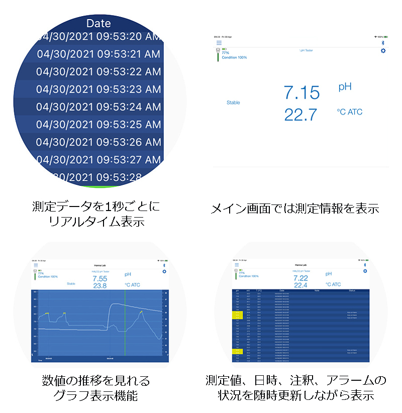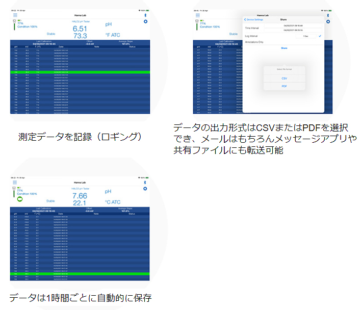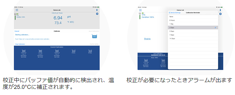 ■Bluetooth ![]() ■データロギング ![]() ■GLP(Good Laboratory Practice) 校正履歴の詳細を表示 ![]() ■校正 ![]() ■追加機能 ![]() |