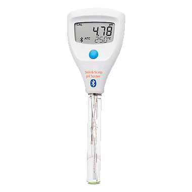 | Bluetoothを搭載し、お手元のスマートフォンやタブレットがpH計の早変わりします。 皮膚や頭皮の測定に適したフラット状のpH電極を採用し垂直に押し当てて測定。液絡部の詰まりによる劣化を最小限に抑える構造です。 ![]() ■特長 ●4点校正が可能で、±0.05pHという測定精度 小型のpHテスターとしては信頼性の高い1台です。 ●皮膚や頭皮の測定に対応 pH電極の先端部はフラットなので、皮膚や頭皮に押し当てて測定できます。 ●データの保存や転送も簡単! Bluetooth接続で無料の専用アプリを利用すれば、お手元のスマートフォンやタブレットの操作で簡単にデータ送信が行えます。 ●圧倒的なコストパフォーマンス! ポケットに入るサイズの従来のpHテスターとは一線を画すMF2PHN-9810372H。ラボ向けの専用電極を備えた本器はコストパフォーマンスも圧倒的です。 ●電極構造 皮膚や頭皮の測定に適したフラット状のpH電極を採用。液絡部はオープンで、垂直に押し当てて測定できます。 ガラスボディのため洗浄もしやすいです。 電極は増幅器を内蔵しておりノイズ誤差を防ぎ、かつ素早く安定した測定を可能にします。 ![]() ●お手元のスマートフォンやタブレットがpH計に早変わり 専用アプリはiOSとAndroidに対応。アプリをインストールしたスマートフォン/タブレットと本機をBluetooth接続すれば、お手元のスマートフォンやタブレットがpH計に早変わりします。 普段から馴染みのあるスマートフォンやタブレットなので直感的に操作でき、データのメール送信も簡単に行えます。(メール送信はCSVまたはPDF形式から選択可能) なお、アプリの利用に課金は一切ありません。 ![]() ●pH電極の状態表示&校正情報(GLP) 校正後のpH電極の状態を画面に表示。本来目に見えないpH電極の状態を把握しでき、メンテナンスや交換時期を適切に判断できます。初めての方にも安心の機能です! 校正情報(GLP)も充実。校正日時や標準液の種類、オフセット/スロープはもちろん、校正を行った標準液間のスロープも見れます。これにより、使用した標準液の汚染/劣化も把握でき便利です! ![]() ●3点校正まで可能(アプリ使用時は4点校正まで) ●初回分のpH標準液と電極洗浄液、電極保存液が付属。校正と測定後のメンテナンスに必要なものが付属していて安心です。 ●ボタン1つの簡単操作 ●ボタン電池1個(CR2032型)で約1000時間の継続使用が可能。(Bluetoothの使用だと約500時間) ■仕様