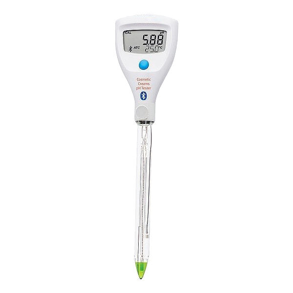 | Bluetoothを搭載し、お手元のスマートフォンやタブレットがpH計の早変わりします。 化粧クリームや半固形食品の測定に適した円錐状のpH電極を採用。液絡部の詰まりによる劣化を最小限に抑える構造です。 ![]() ■特長 ●4点校正が可能で、±0.02pHという測定精度 小型のpHテスターとしては信頼性の高い1台です。 ●化粧品やクリームの測定に対応 液絡部にはトリプルセラミックを採用。洗浄もしやすい構造です。 ●データの保存や転送も簡単! Bluetooth接続で無料の専用アプリを利用すれば、お手元のスマートフォンやタブレットの操作で簡単にデータ送信が行えます。 ●内部液も補充可能! 3.5M KClは補充型のため安定性の維持にもつながり安心です。 ●圧倒的なコストパフォーマンス! ポケットに入るサイズの従来のpHテスターとは一線を画すMF2PHN-9810432H。ラボ向けの専用電極を備えた本器はコストパフォーマンスも圧倒的です。 ●電極構造 化粧品やクリームの測定に適したpH電極を採用。 液絡部はトリプルセラミックで詰まりによる劣化を最小限に抑える構造です。 内部液(3.5M KCl)は補充可能なため、測定の安定性や反応速度の向上につながります。 電極先端部は円錐状で、電極洗浄もしやすい形状です。 測定可能な温度は-5~70℃まで対応。 電極は増幅器を内蔵しておりノイズ誤差を防ぎ、かつ素早く安定した測定を可能にします。 ![]() ●お手元のスマートフォンやタブレットがpH計に早変わり 専用アプリはiOSとAndroidに対応。アプリをインストールしたスマートフォン/タブレットと本機をBluetooth接続すれば、お手元のスマートフォンやタブレットがpH計に早変わりします。 普段から馴染みのあるスマートフォンやタブレットなので直感的に操作でき、データのメール送信も簡単に行えます。(メール送信はCSVまたはPDF形式から選択可能) なお、アプリの利用に課金は一切ありません。 ![]() ●pH電極の状態表示&校正情報(GLP) 校正後のpH電極の状態を画面に表示。本来目に見えないpH電極の状態を把握しでき、メンテナンスや交換時期を適切に判断できます。初めての方にも安心の機能です! 校正情報(GLP)も充実。校正日時や標準液の種類、オフセット/スロープはもちろん、校正を行った標準液間のスロープも見れます。これにより、使用した標準液の汚染/劣化も把握でき便利です! ![]() ●3点校正まで可能(アプリ使用時は4点校正まで) ●初回分のpH標準液と電極洗浄液、電極保存液が付属。校正と測定後のメンテナンスに必要なものが付属していて安心です。 ●ボタン1つの簡単操作 ●ボタン電池1個(CR2032型)で約1000時間の継続使用が可能。(Bluetoothの使用だと約500時間) ■仕様