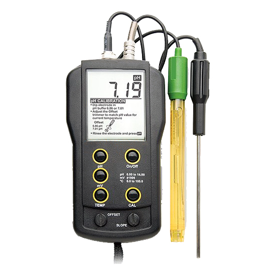 | 温度も測定可能なスタンダードタイプのポータブルpH計です。 別売りのORP電極を接続することでORP(酸化還元電位)の測定も可能です。