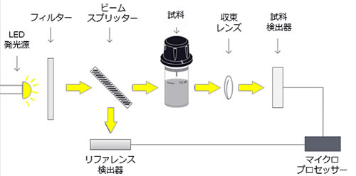 | MF2PTM-7727Hはポータブルのデジタル吸光光度計で色度を測定します。(0~500 PCU) 本器は測定試料をそのまま読み取るため試薬は使用しません。また本器では、バリデーター(標準液セット)での本体の数値検証・校正も行えます。これにより高い精度と信頼性を保て安心です! 本器はメーカー従来品がパワーアップしたモデルで、以下のように性能が上がっています。 ![]() ■特長 ●ビームスプリッターを採用した先進の光学システムにより再現性と安定性が向上。 ビームスプリッター&リファレンス検出器 ビームスプリッターにより光は試料側のほかリファレンス検出器にも利用され光の密度をチェックします。リファレンス検出器は電力や光学部品の熱による変動を補正し安定した光源を供給します。 LED光源 タングステンランプ(旧商品)と比べ優れた性能を持ちます。LEDは発光効率が高く電力の弱い時でもより強い光を供給。また熱の発生も少なく光学部品の電気的な安定にもつながります。 フィルター(帯域通過フィルター) 帯域幅:8nm、波長精度:± 1.0nmを確保。より明るく強い信号を受信することで波長の読み取りエラーが少なくなり精度の高い測定につながります。 集束レンズ ガラスセルを通るすべての光を集めガラスセルのキズなどによる誤差をなくします。 ![]() ●測定手順のナビゲーション機能。 ●本体ケースの防水機能がIP67にアップ。(ガラスセルの挿入部も防水性アップ) 本体ケースは防水機能がIP67になり、ガラスセルの挿入部もプラスチックホルダーを採用。 メーカー従来品に比べ防水性と耐久性がアップし安心です。 ●50データの自動ロギング機能。 測定値は自動で50データまで保存するので安心。詳細ボタンで測定日時もしっかりわかります!(年/月/日、時:分:秒) ![]() ●バッテリー残量(%)を常に画面表示。 ●時間設定が可能。(年月日と時間) ●バックライト機能が付きより見やすく。 ●メーカー独自の検証・校正機能 メーカー独自のバリデーター(標準液セット)を使うことで基準値内にあるかの検証と、許容範囲外の場合には校正が行えます。(校正とは本体の数値のズレを補正する機能)お客様ご自身でいつでも行えるため、常に高い精度と信頼性を保て安心です ![]() バリデーター(標準液セット)の外観例 液体の入った2種類のガラスセルを使用し測定値の検証と校正が可能。 高い精度や信頼性を求める方にはぴったりです!(機種や測定項目によって液の色は異なります) ●使いやすいコンパクトサイズ 横幅は142mmと旧商品に比べさらにコンパクト設計。 ![]() ■用途 無機肥料の使用、腐敗した動植物、生活排水、下水汚泥の地上処分、工場廃水などに由来する有機性窒素化合物が、水や土壌中で分解される過程で作られます。窒素化合物には亜硝酸イオンなどもあり、これらの形態はバクテリアの作用により変化します。亜硝酸は低濃度であっても水生生物にとって有害なので、水産養殖施設では厳重に監視されています。それに対しクーリングタワーにおいては適量の亜硝酸は腐食防止のために必要です。高濃度では、亜硝酸は環境及び人に対して有害です。そのため湖や池と同様に家庭用水も確認のため通常監視されています。窒素肥料、食品防腐剤でよく使われます。 ■仕様