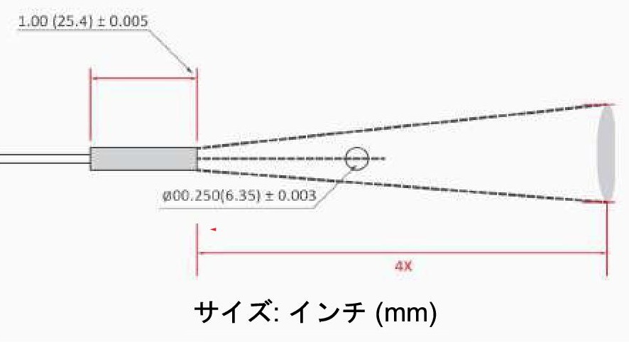| 外部電源を必要としない非接触の赤外線(IR)温度センサーです。 60ミリ秒と非常に早く温度を検知でき、熱電対K-タイプセンサーと同様に温度計や温度データロガー、温度コントローラー等に接続できますので、多くの用途に使用できる非接触型の温度センサーです。 本製品は距離係数(視界)が4:1 (14°)のため、狭い範囲の温度測定に対応できます。 ![]() ■特徴 ● 赤外線(IR)熱電対K-タイプ ● 本質安全構造 ● 反復性 0.01℃ ● 互換性 ±1 % ● 分解能 約0.0003℃ ● 小型軽量サイズ ■赤外線温度センサーは次の用途に多く使用されています; ●UV硬化システム ●スーツケースの製造 (真空熱成形) ●手術器具の冷却システム ●ポイントオブケア検査(POCT) ●真空シール包装機 ●半導体ウェーハ加工の排気ガス削減システム ●レーシングカー (タイヤの温度測定) ●ボトルブロー成形機械 ●製紙の乾燥工程 ●フライホイール/ベアリングの温度管理 ●点々溶液の温度管理 ●プラスチック粉砕機 ●大判プリンターの乾燥プロセス ●オフセット、デジタル、インクジェット乾燥プロセス ●非接触パン生地温度測定 ●その他多種 ■寸法図 ![]() ![]() ■仕様