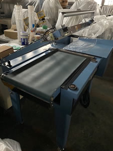 ●シール終了後、コンベアが作動し、被包装物をトンネルへ搬送します。