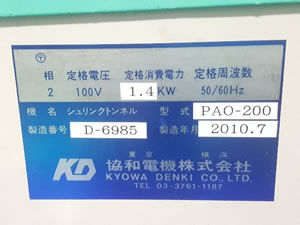 | 中古協和電機シュリンカー/品番 PAO-200 問い合わせ番号 Z-0919-7 |